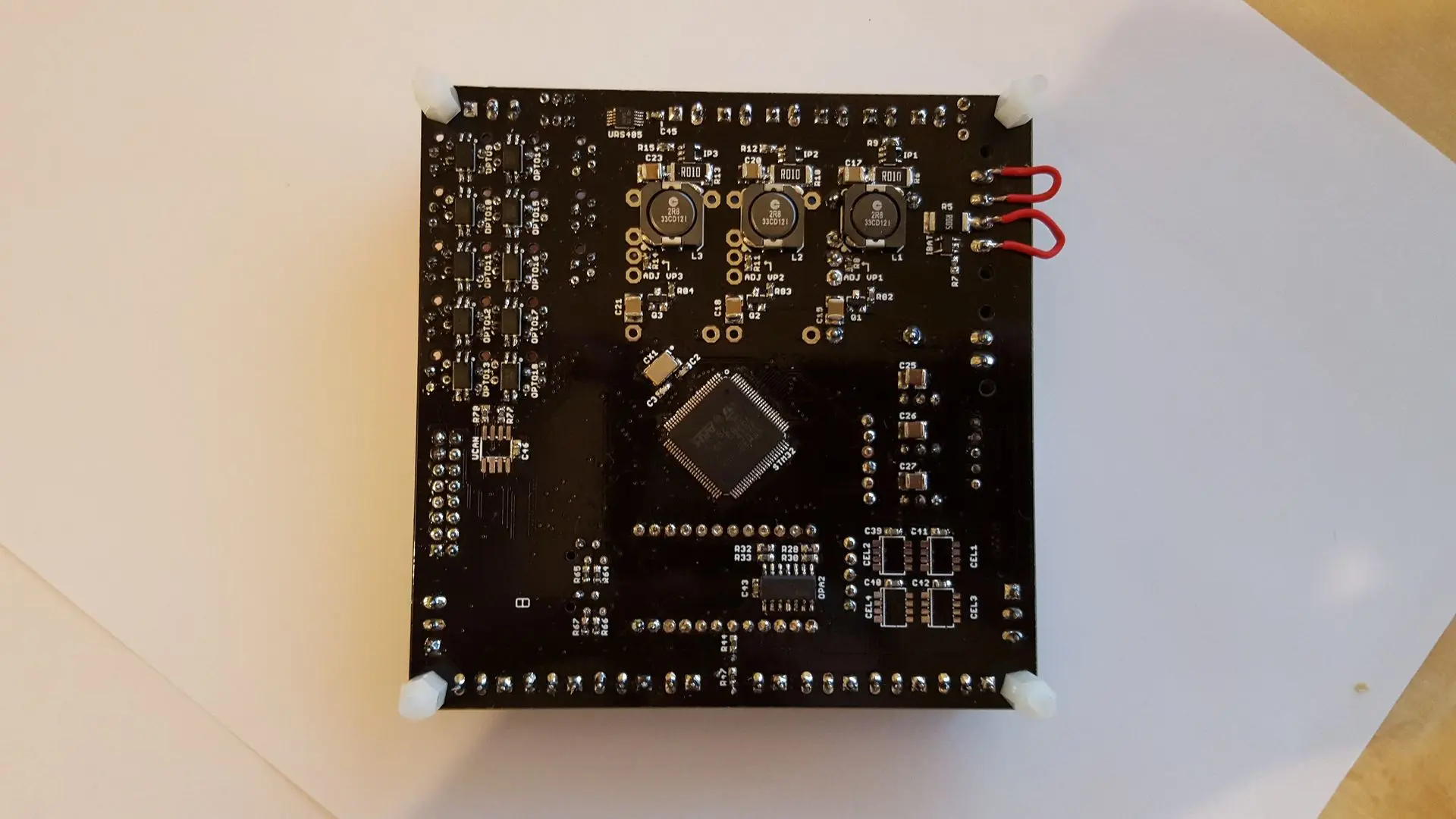 La carte est très compacte et la majorité de la surface TOP est dédiée aux connecteurs. La partie inférieure n'a que des composants CMS afin de simplifier la soudure des composants sur cette face. Compte-tenu du budget serré, le routage a été réalisé en seulement 4 couches ce qui a demandé un temps important. Afin de simplifier la conception, certains blocs fonctionnels sont déportés sur une carte mezzanine: